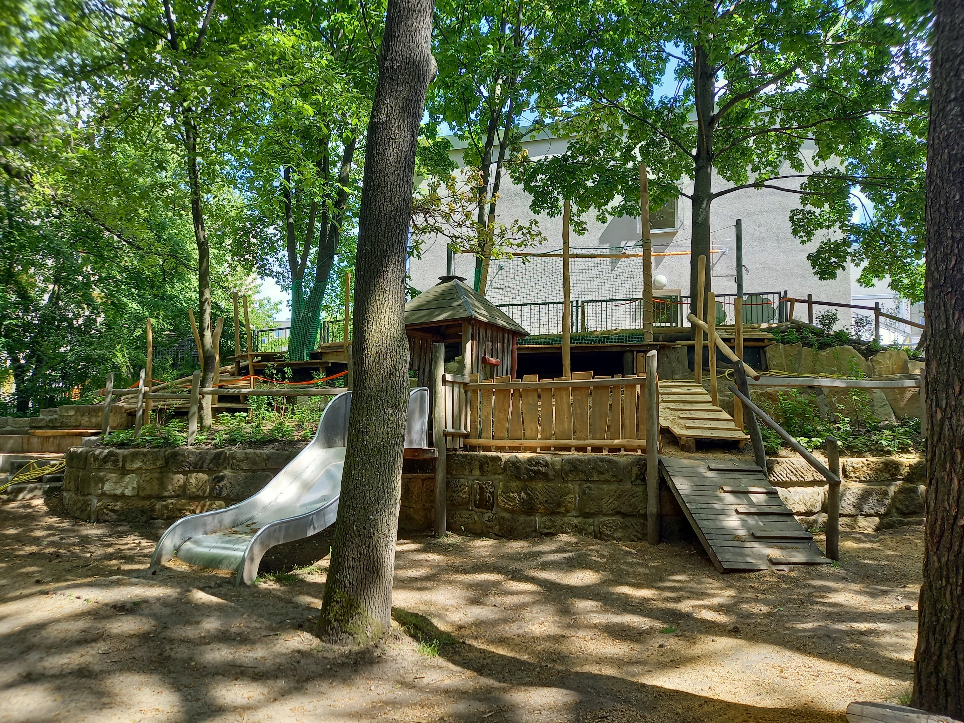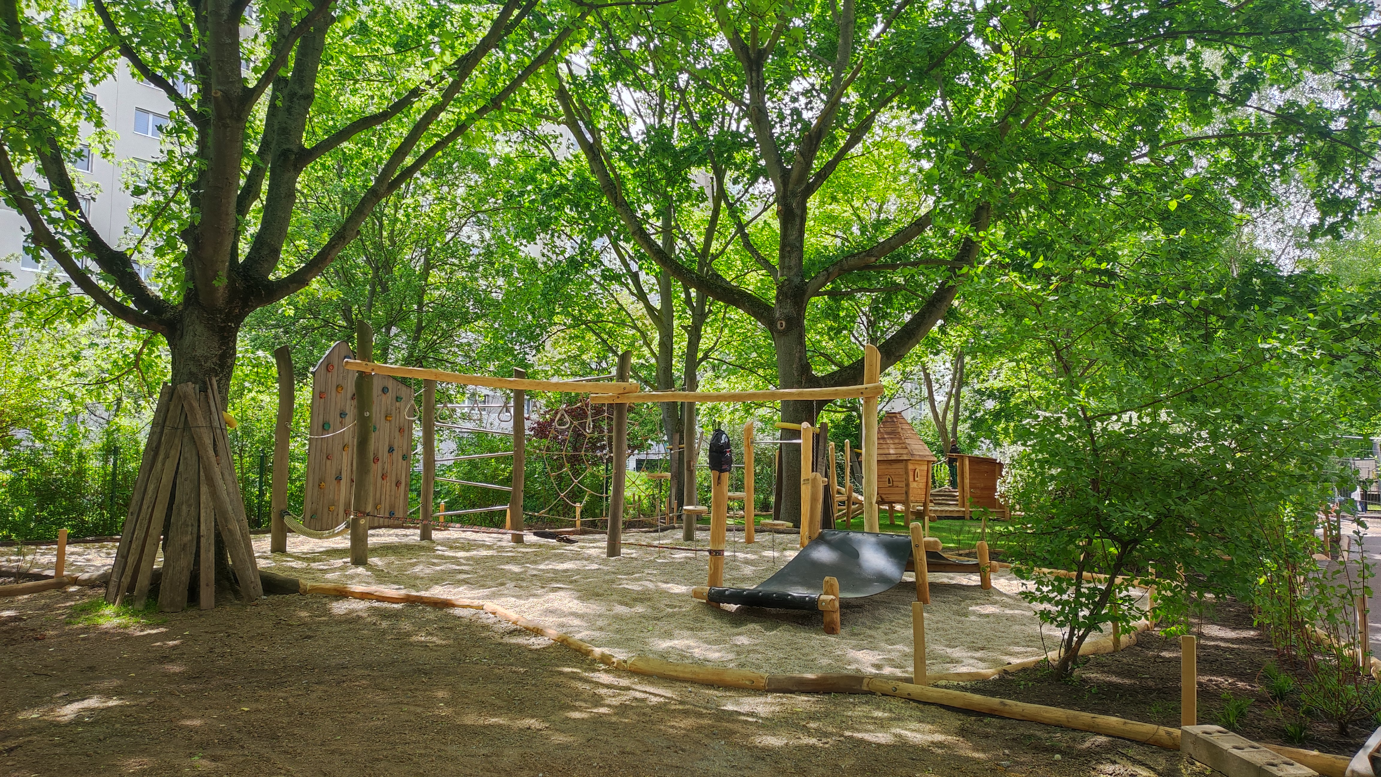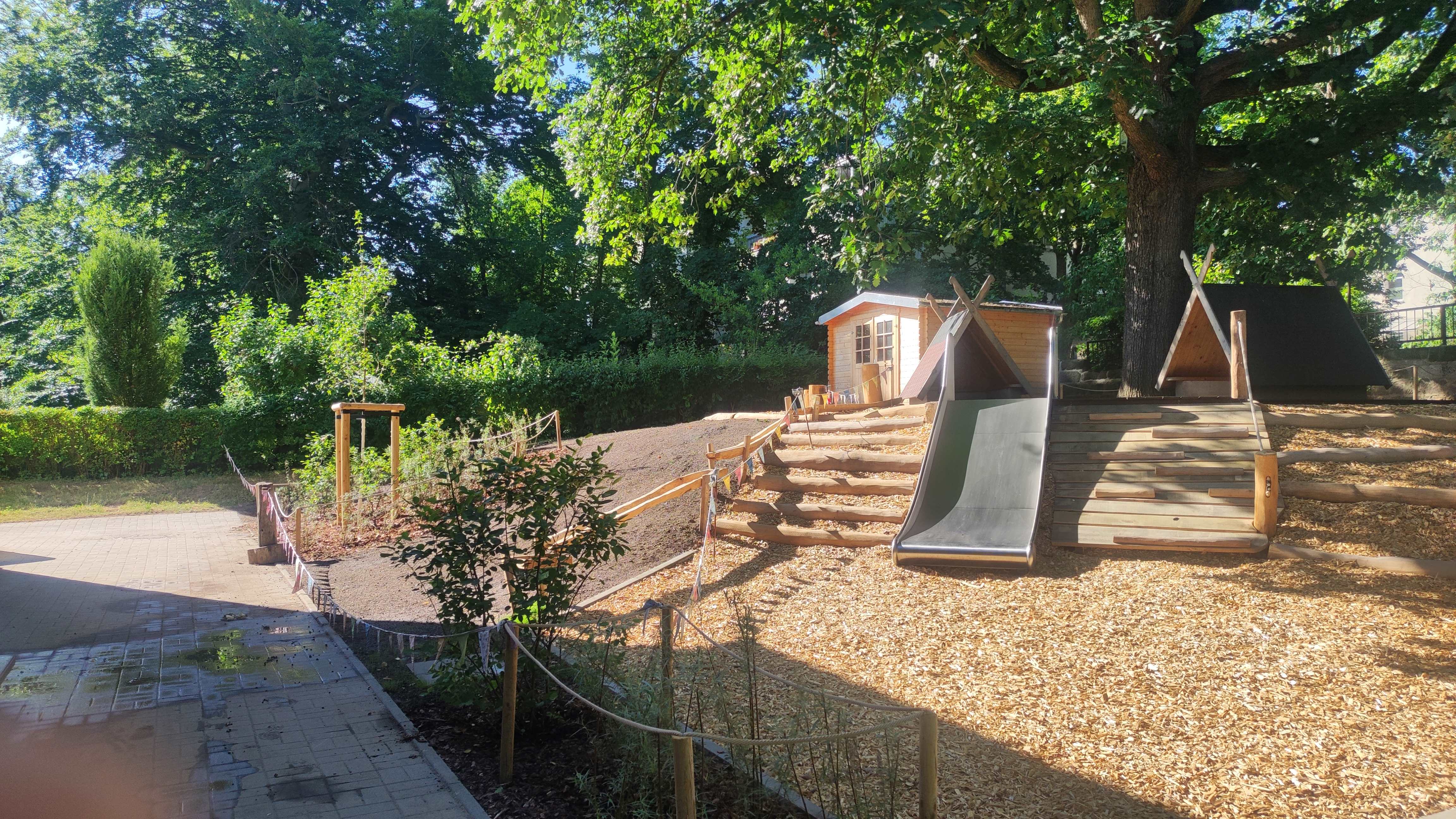 - Die Kita „Regenbogen“ auf der Altenzeller Straße erhielt eine umfassende Aufwertung ihrer Spielflächen – mit neuen Rollerwegen, Terrassierungen, Seilnetzen und Baumpodesten.