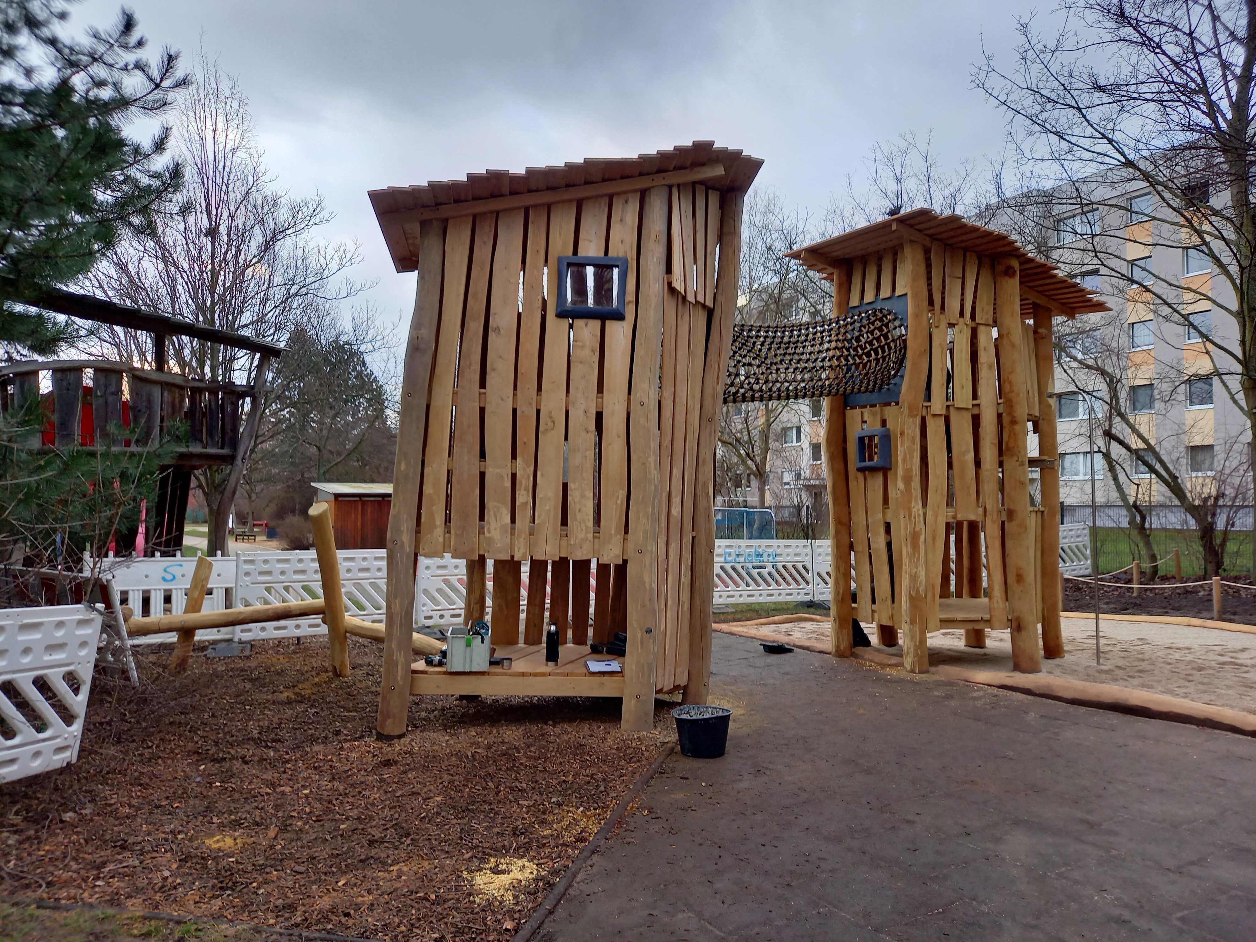- In der Kita Hermsdorfer Straße wurden Spielgeräte im Krippenbereich erneuert, neue Sonnensegel installiert, ein Bolzplatz neu gestaltet und die Außenflächen umgestaltet.