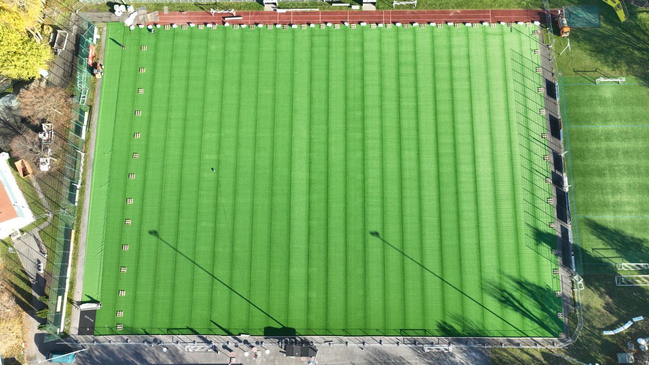Mit zusätzlich erforderlichen Bauleistungen im Untergrund (Entwässerung) und längeren Lieferzeiten für den neuen Rasenteppich wurde der Platz am 30.11.25 dem EB Sportstätten bzw. dem Verein übergeben. Die Restleistungen (u.a. Nachverfüllung Sand, Egalisierung kleinerer Unebenheiten) werden im nächsten Jahr sowie die vereinbarte jährlich durchzuführende Intensivpflege in den nächsten 5 Jahren erfolgen.